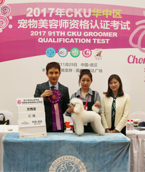 武漢貴族寵物美容培訓學校優秀學員周夢同學榮獲2017年CKU美容認證考試C級優秀獎